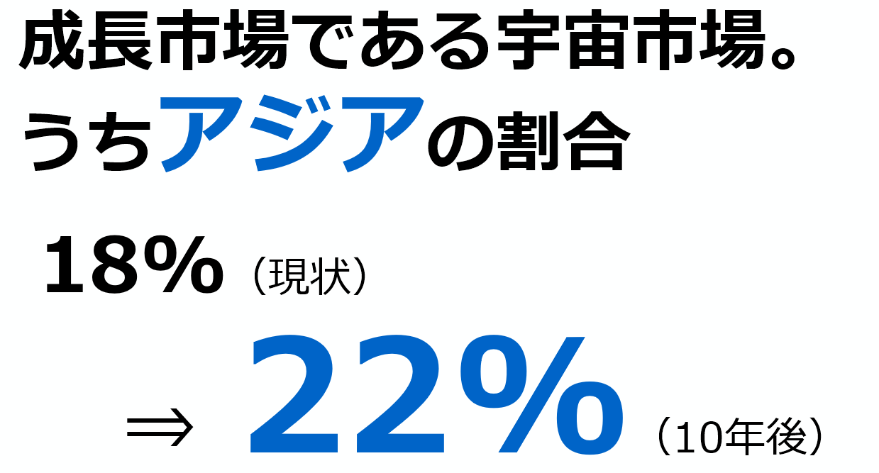 高濱 そしてもう一つ。市場がアジアへ移動しているという事実です。現在、宇宙市場のうちアジアが占める割合は18%ですが、10年後には22%まで拡大するとされています。欧米中心だった市場でしたが、アジアの存在感も増していく。アジアには解決すべき社会課題が多く、気候変動、防災、農業効率化、都市インフラなど、衛星データを使う理由がある。そして、日本は地理的にも文化的にもアジアと非常に相性がいい。