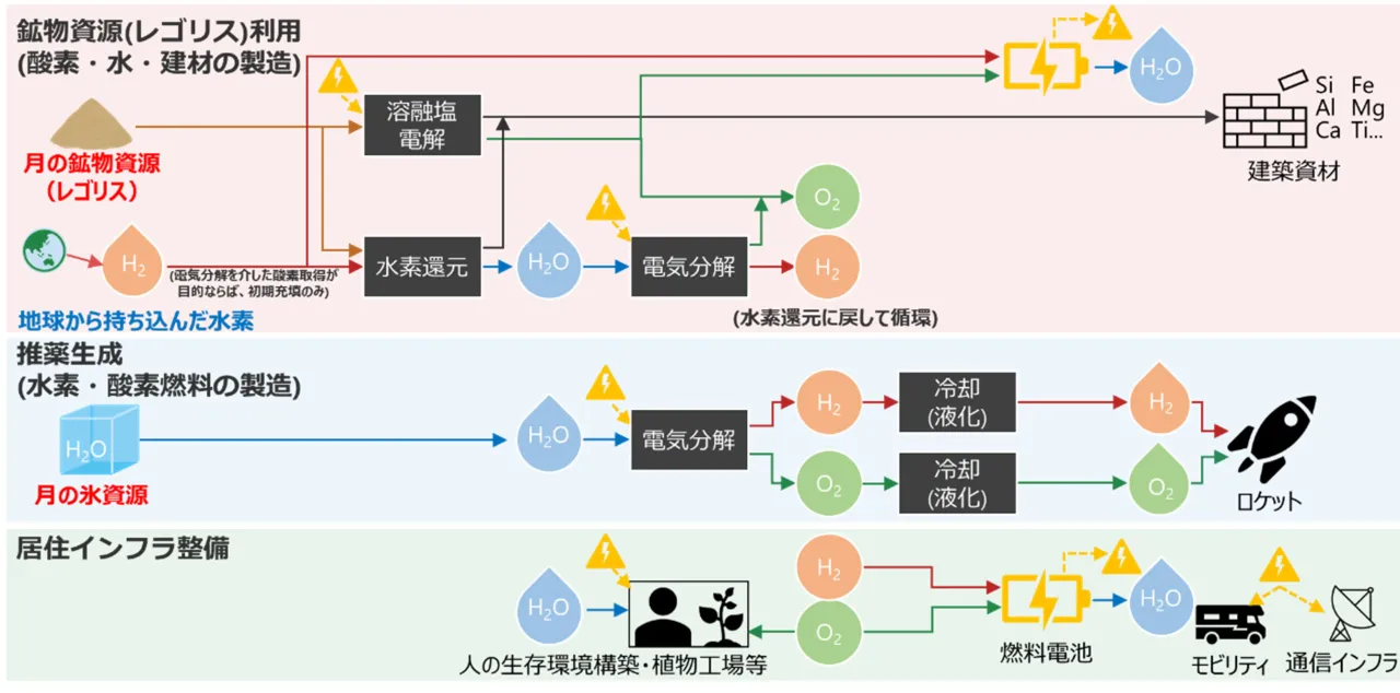 地球から持ち込む物資に頼らずに現地資源を利用する技術開発が必要となっていて、この大きな課題は ISRU (In-Situ Resource Utilization)と定義され、従来の宇宙業界の技術領域だけでは解決が困難となっています。