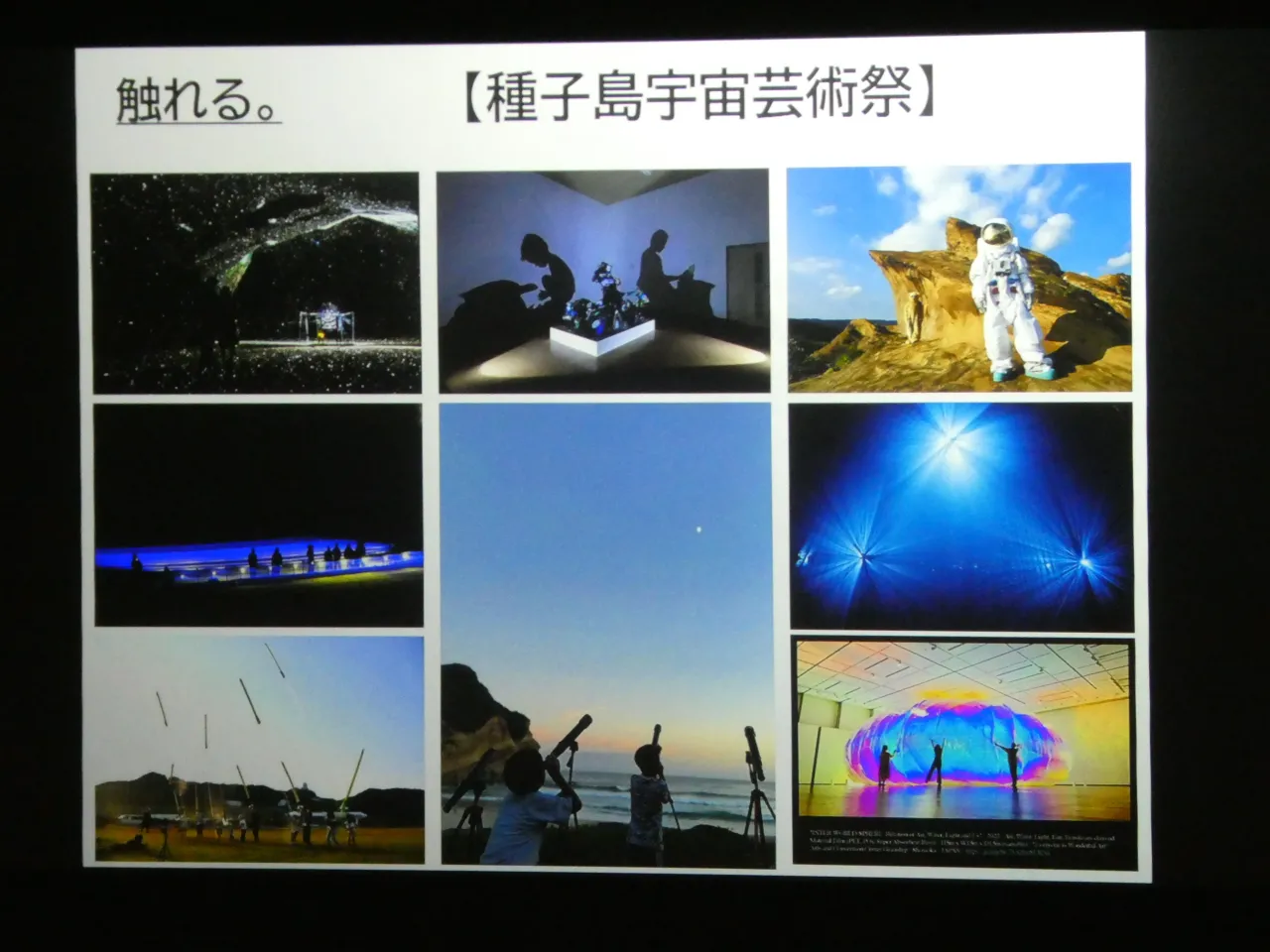 最初の柱「触れる」では、ハードウェア中心の宇宙観をあえて離れ、感性に訴えるアプローチが採用されている。「南種子町では、宇宙とアートをテーマにした芸術祭『海外宇宙芸術祭』を実施しています。国内外で活躍されておりますアーティストの皆さんが、文化芸術の観点で宇宙を捉えて、大自然に融合するアート作品を制作展示するなどして、未知の空間を生み出しています」(小脇副町長)