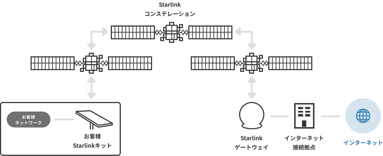沖縄周辺のように地理的に離れた場所からの通信も、宇宙空間を経由して日本上空まで運ぶことができる。これがStarlinkの大きな強みなんです。