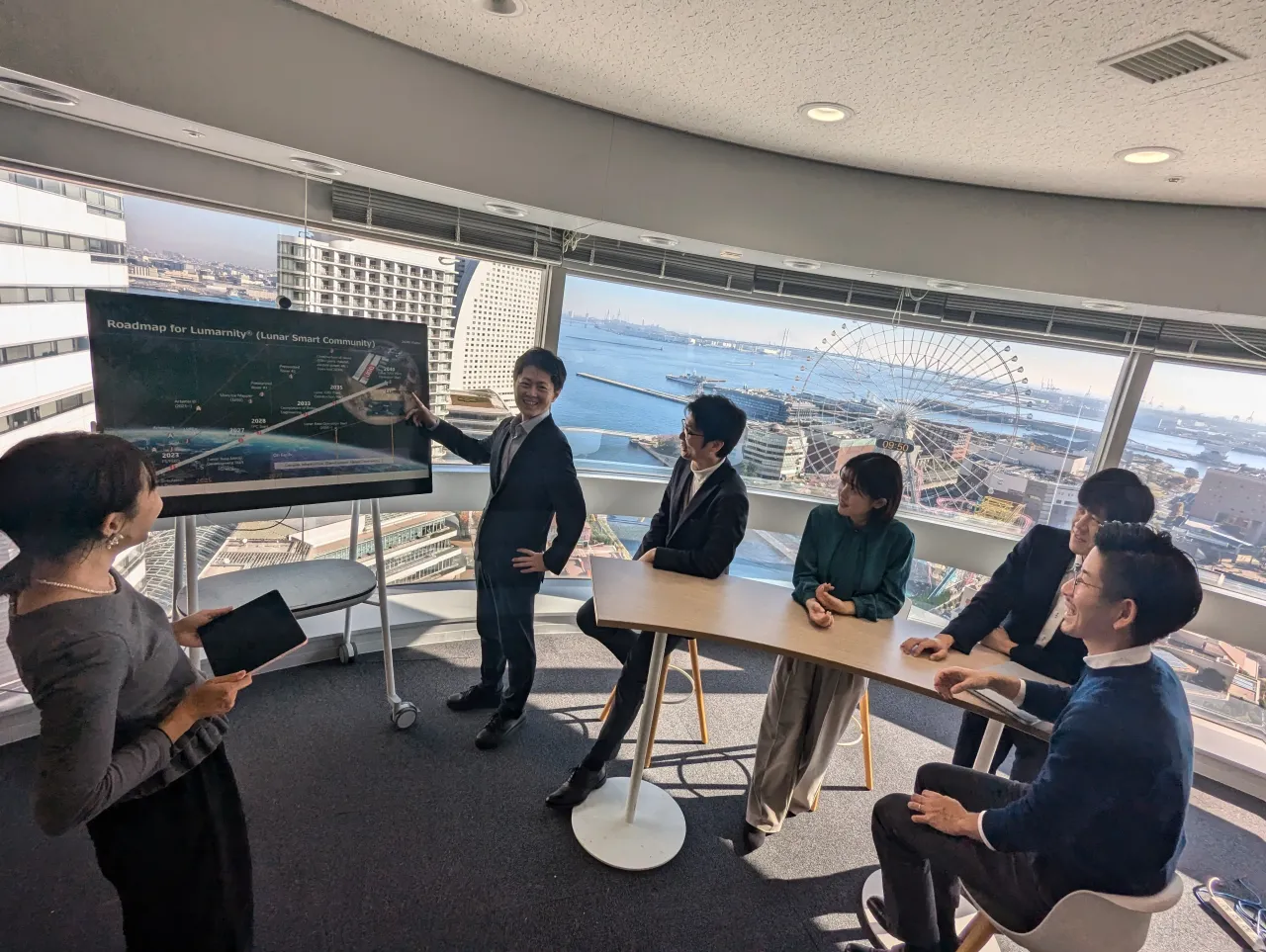 宇宙が名前に入った横浜のシンボルの隣に、宇宙エンジニア™が結集していることに運命も感じています。ちなみに、コスモクロック21は直径100.0m、全高112.5m で、1992年までは直径・全長ともに世界最大だったそうです。私が1998年に入社した当時から現在でも条件付きですが、世界最大の“時計機能付き”大観覧車です。私も「技術力を活かして、世界を舞台に活躍したい」と考え当社へ就職したので、コスモクロック21を見るたびにその思いを新たにします。