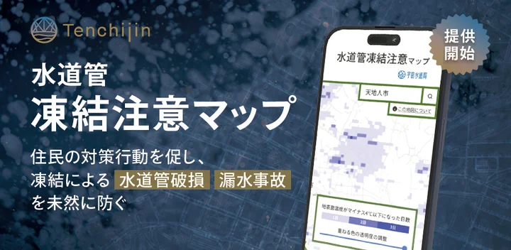 2026年1月30日、天地人は自治体や水道事業体向けに「水道管凍結注意マップ」の提供を開始した。背景には、「住民による凍結対策」が一向に進まないという課題がある。日本水道協会の調査によれば、寒波による給水管破損の約9割は、防寒対策をしていない箇所で発生している。自治体は広報誌などで注意喚起を行っているが、住民側には「うちは大丈夫だろう」という正常性バイアスが働きやすく、特に温暖な地域ほど対策がおろそかになりがちだ。