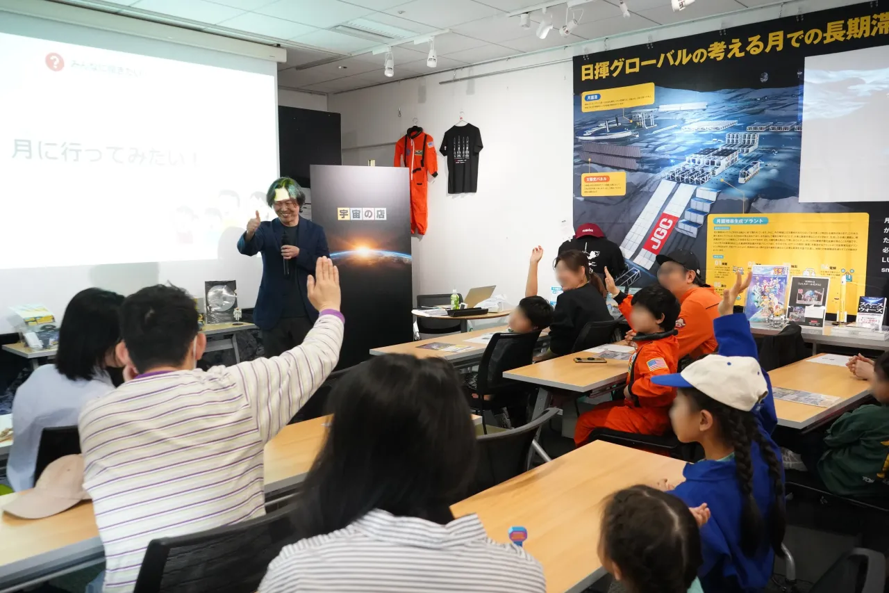 「月がどんなところか?」の投げかけにも、それぞれ回答があり、「クレーターが多い、大気圏が無い」など、専門的な用語も飛び交っていました。また、月の水の活用方法では、「月の水で泳いでみたい!」なんて、エンジニア目線では贅沢な意見も、子どもならではの発想で刺激的でした。加えて、「火星に住むことは考えられてますか?」と、月の更に先の未来の質問もあり、子どもたちに頼もしさも感じました。