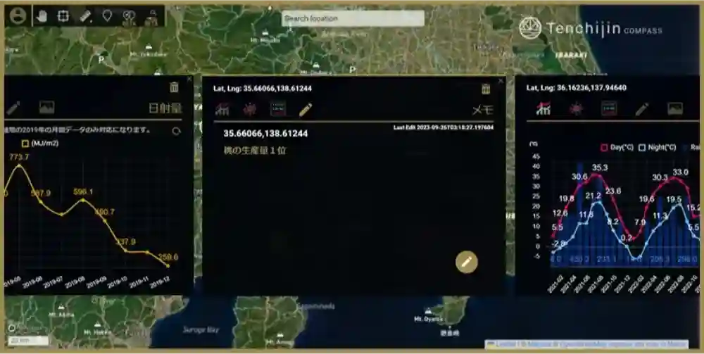 ●衛星データや地表面温度・夜間光など複数レイヤーを地図上で統合表示
